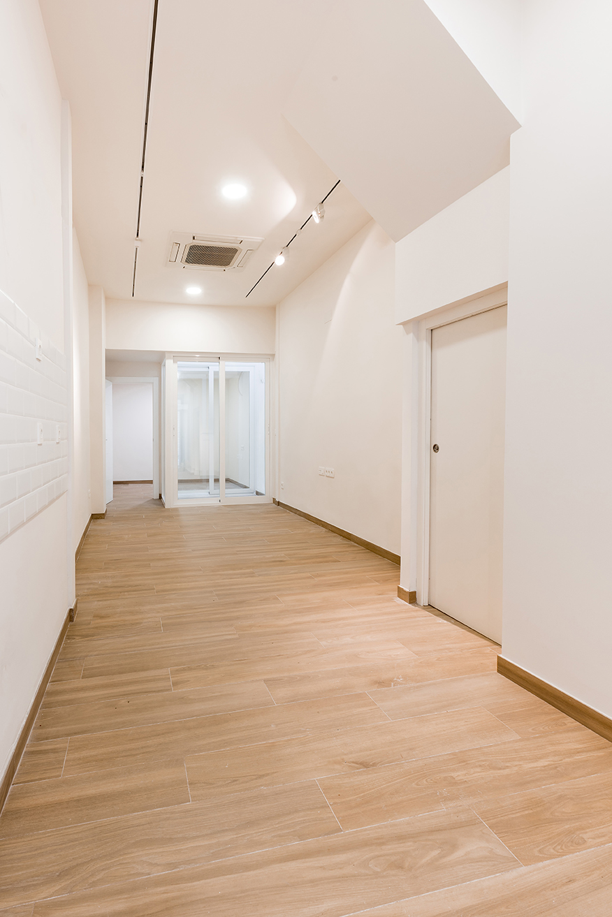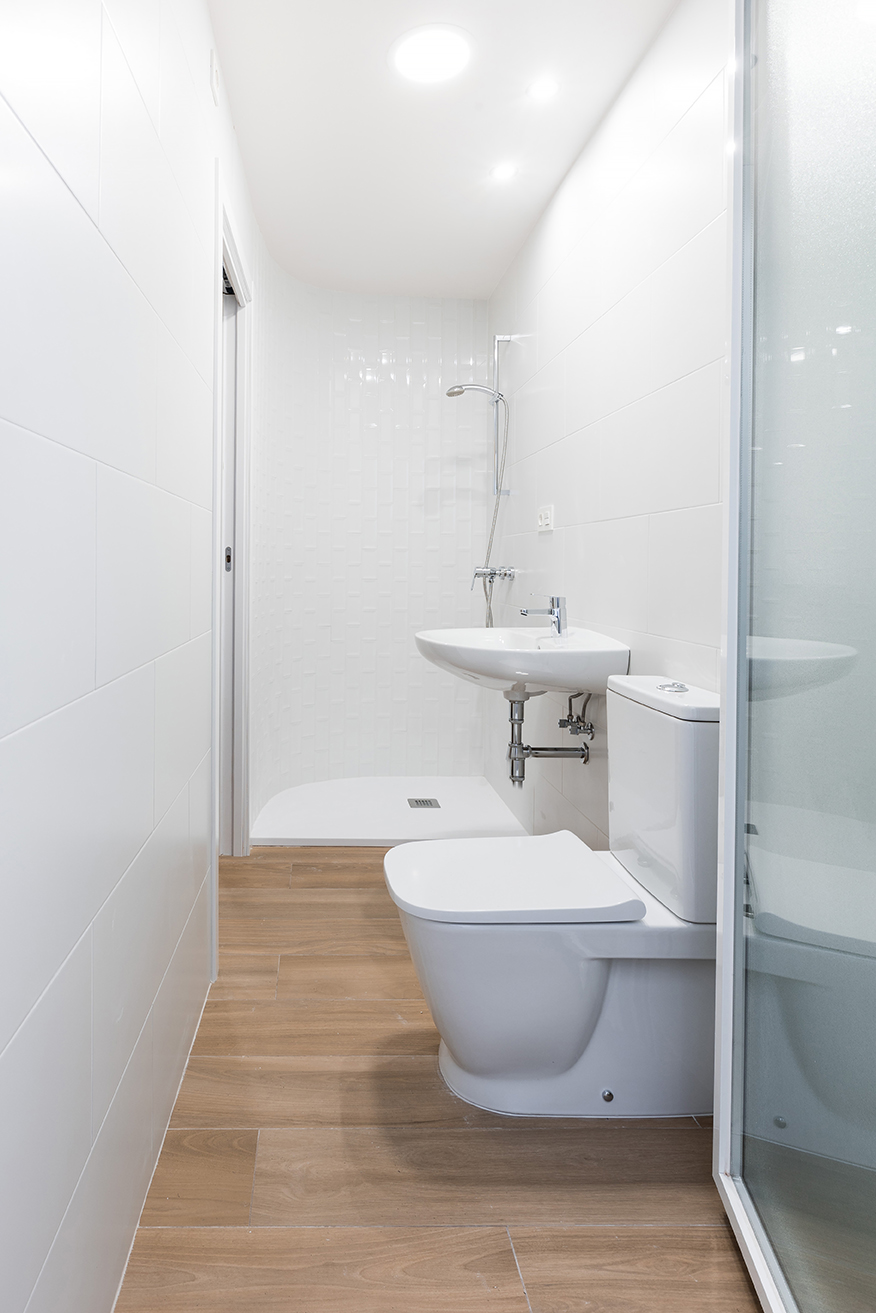 El resto de intervenciones consisten en la renovación de acabados e instalaciones, reforma de baños y planteamiento de un nuevo espacio cocina.